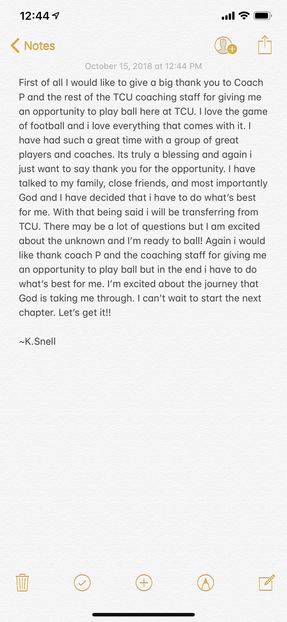 Kenedy Snell To Transfer From Tcu Frogs O War
